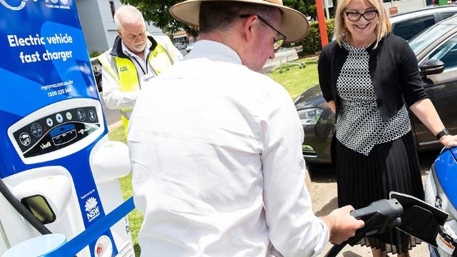 Drivers of electric vehicles can now stop in Armidale to recharge, with Northern Tablelands MP Adam Marshall today officially turning on a new fast charger.