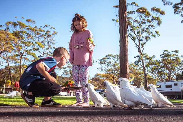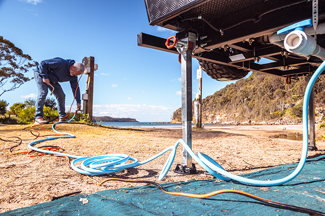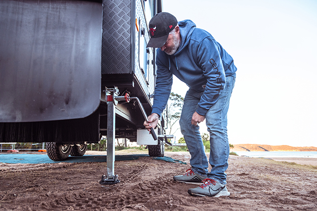 Today, all the vans in the NRMA Ocean Beach Holiday Resort loom large, which brings me to some key advice about your tow vehicle. With a Taj Mahal-sized caravan like ours, extra-wide towing mirrors are a must, as is ensuring your vehicle is fitted with trailer brakes. It’s vital you familiarise yourself with your vehicle’s guidelines for towing capacity and tongue weight, too. Crucially, when loading up your van with gear, be mindful of where you put all that weight – for example, too much at the back of the van will cause an unsettling lack of balance for the hitch and your vehicle.