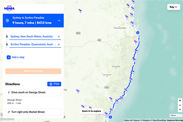 There are plenty of upsides to owning an electric vehicle, such as smooth and silent driving with no tailpipe emissions, but even with batteries and range improving, taking an EV on a road trip can be an anxious experience. Once again, the MyNRMA app has you covered. Similar to the Fuel Finder (above), its ‘charge now’ feature will show you an interactive map of NRMA EV charging stations in your area and provide details on how to charge up and pay.