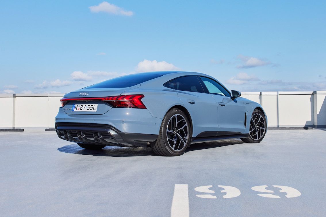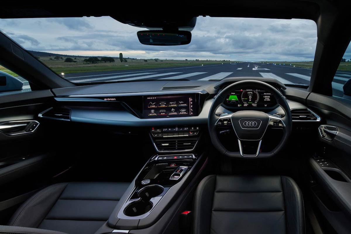 A closed grille hints at its electric status, as does the blade-like side features above the sills that are common to all Audi’s EVs. Secreted away is a rear spoiler that extends at speeds above 90km/h and then into a second position at 170km/h (something reserved for track days).