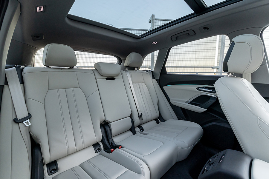 Rear row space is a tad lacking, with much of the row’s 100mm of slide needing to be utilised to achieve good legroom. Perhaps a necessary engineering consideration for upcoming Sportback variants (with their more sloped, coupe-like rooflines), but still disappointing in a next-gen car.