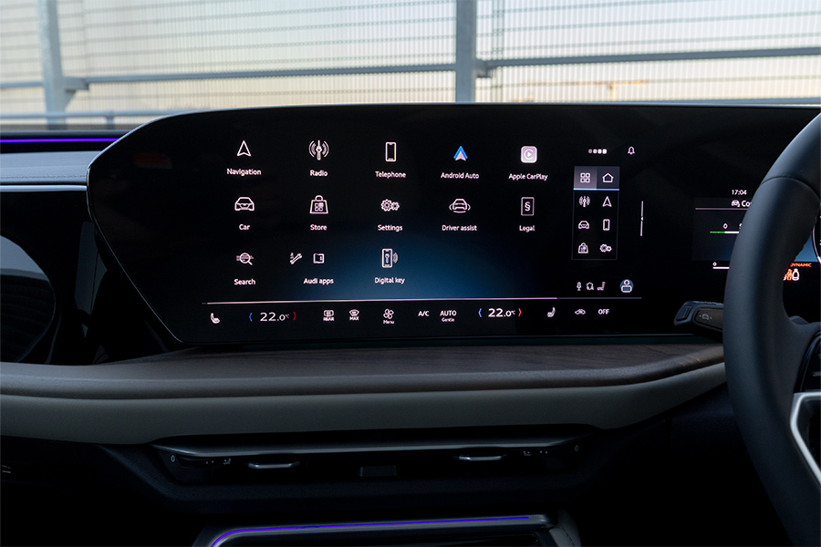Comprised of super crisp OLED 11.9-inch driver, 14.5-inch centre and (optional) 10.9-inch passenger displays, the screens run Audi’s MMI system, with native apps including maps and Android Auto/Apple CarPlay. The new driver display has also received added functionality of running map apps in a section of its screen.