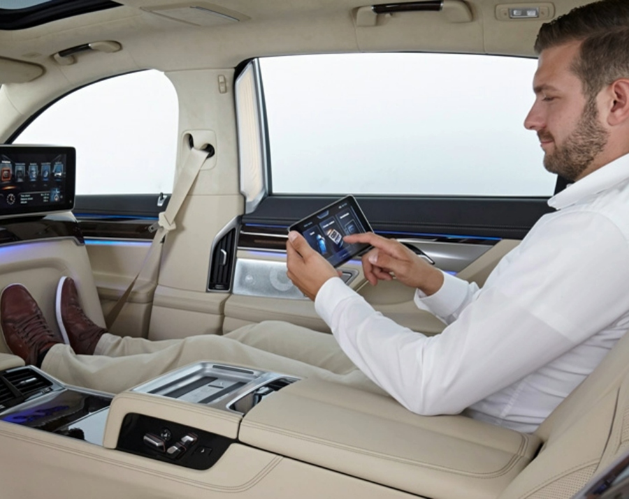 BMW Touch Command allows multifunction operation for comfort, infotainment and communication. The 7-inch touch screen can be used in all seats via a wireless connection and can be stowed in a "theft-proof" charging holder in the rear centre armrest.