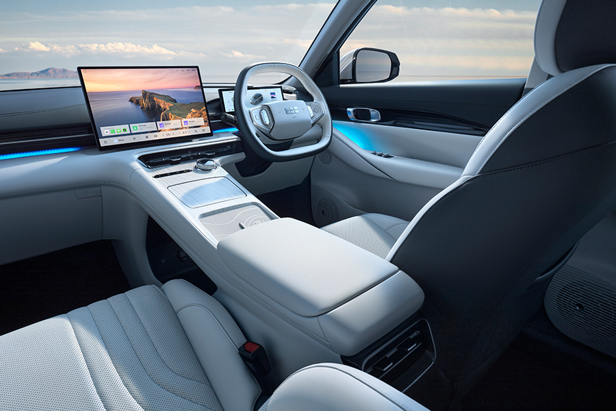 When it comes to practicality, the Leapmotor C10 takes the crown. A cavernous 581 litres of boot space swallows prams, sports gear or road trip luggage with ease. It’s the only one with a proper tow rating too – 750kg braked, 1500kg unbraked. The Kia follows with 460 litres and a 500kg rating either way. Geely’s EX5, however, trails the pack with just 302 litres and no tow capacity.