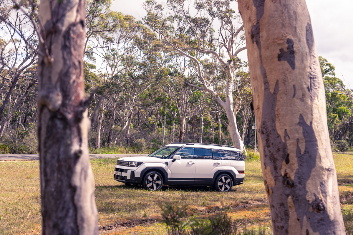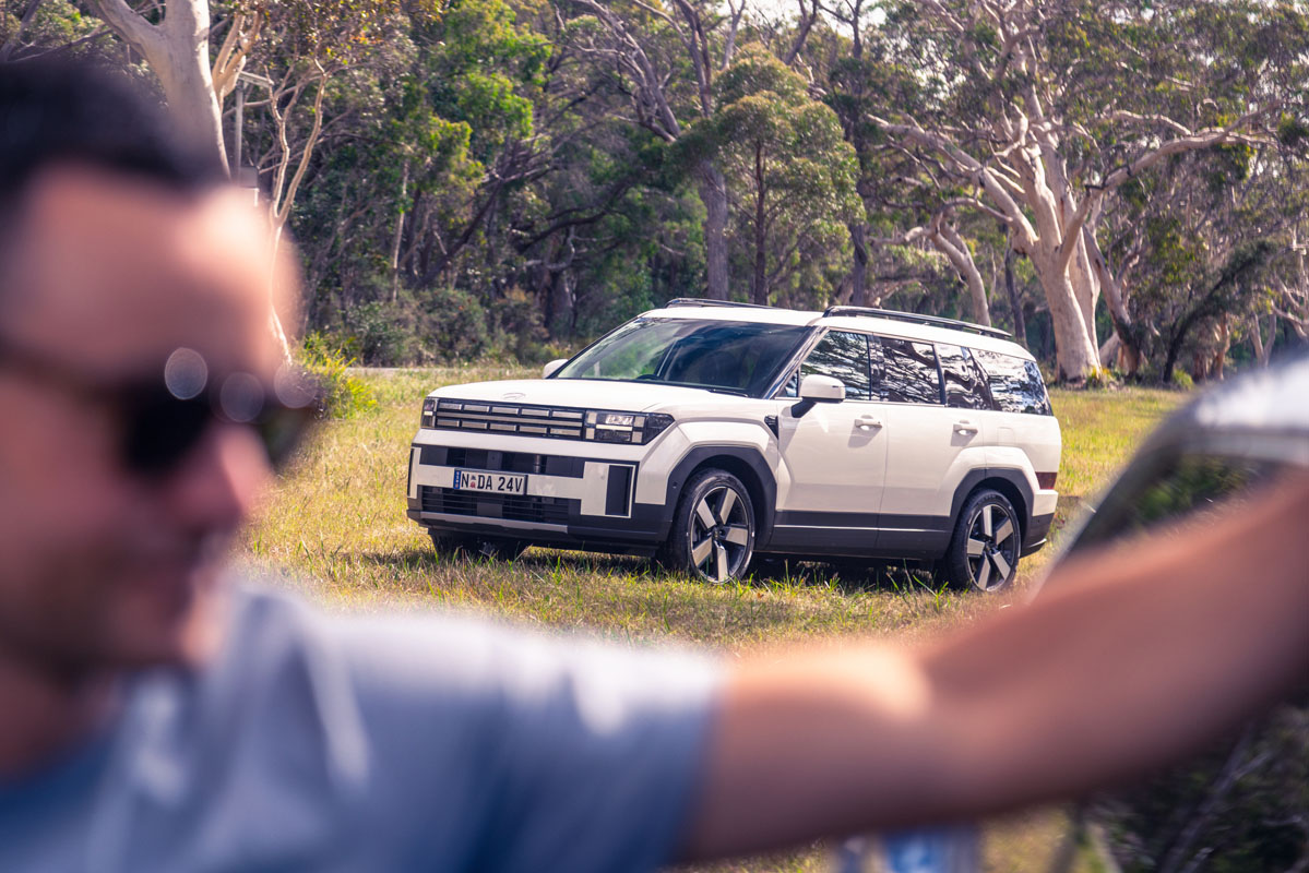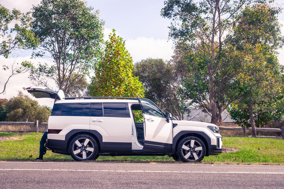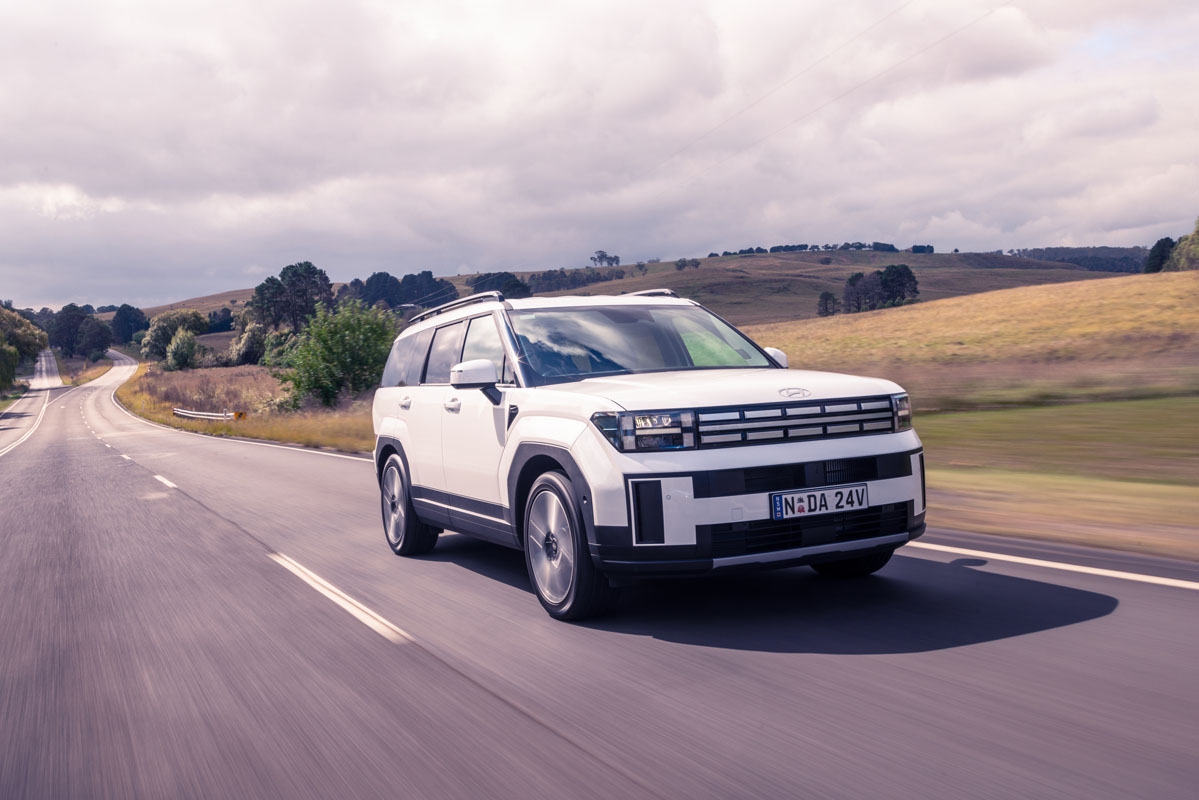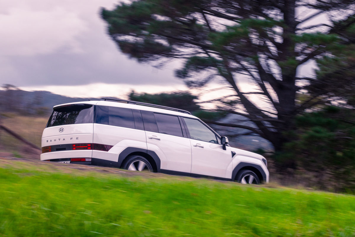 The next in our trio is the Hyundai Santa Fe. Since its arrival on Aussie shores in late 2024, the Santa Fe has been unofficially anointed as the new seven-seat class benchmark. It’s easy to see why: a choice turbo-petrol or hybrid drivetrains, polished on-road dynamics, and a revamped interior that is roomier and more amenable than before make it a desirable package. There’s also its bold exterior styling, which doesn’t only make a strong statement but could be mistaken for a Range Rover product.