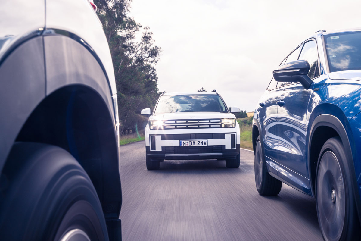 Safety is likewise well sorted across all three competitors, with a full airbag count extending to curtain airbags that cover the third row, plus the latest driver aids and safety acronyms. Each is armed with a five-star ANCAP score, but as ever, the devil is in the detail; on-road testing reveals the intervention of some safety systems varies from mild mannered (Skoda) to plain annoying (Hyundai).