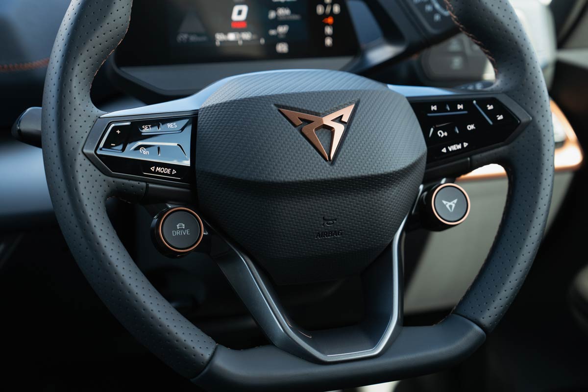 The ‘knob’ is located behind the upper right of the steering wheel, which can initially feel a bit cacky for someone used to shifting gears left-handed. (For the most part the Born is an EV without weirdness for the sake of it, although the sound system’s volume control is notable exception.