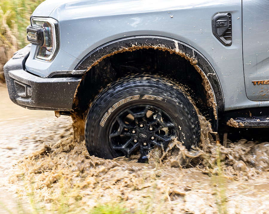 On the tarmac, the Tremor’s V6 and 10-speed auto package delivers seamless grunt that’s predominantly free from diesel clatter. Even with chunkier donuts, the cabin is well insulated from tyre roar and the 30mm wider track goes a long way to offsetting the increased ride height, giving as much assurance through corners as the laws of physics will allow in an off-road engineered SUV.