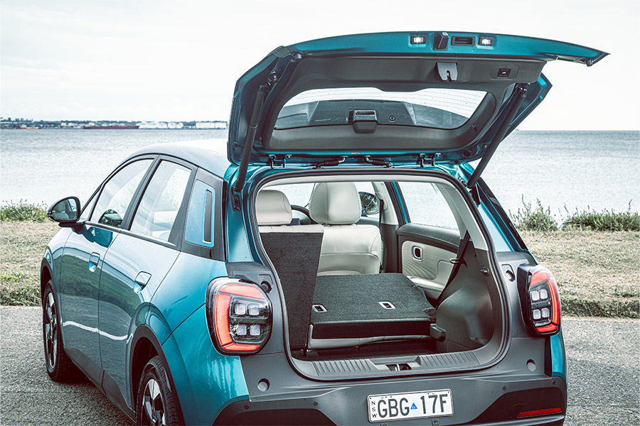 The trade-off for this comfort is in cargo capacity, with the Aion UT rated at 321 litres with the rear seats up and only 689 litres when they’re folded flat. For comparison’s sake, the BYD Dolphin provides 345/1130 litres.