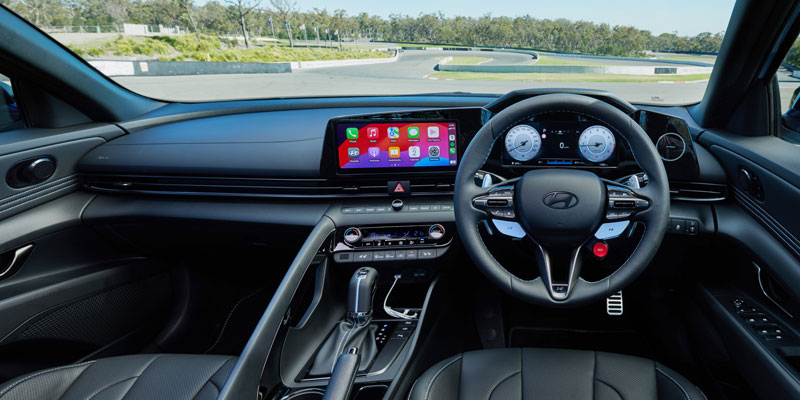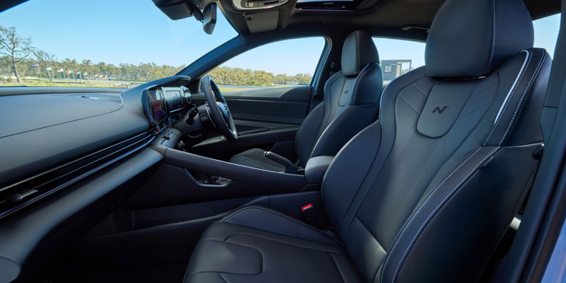 Inside, the N gets supportive sports seats with heating and cooling, although the driving position is a little high. Taller drivers intending track use with a helmet should steer clear of sunroof-equipped models. Compared to the exterior, the N’s interior styling is quite restrained, only sometimes reminding you it shares foundations with much cheaper variants within the model family.