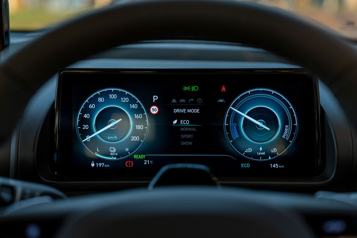 Where the Inster really surprises is in its technology and safety. Dual 10.25-inch displays – one a centre touchscreen unit and the other a digital instrument cluster for key driving information – offer clear, concise and to-the-minute updates on what’s happening.