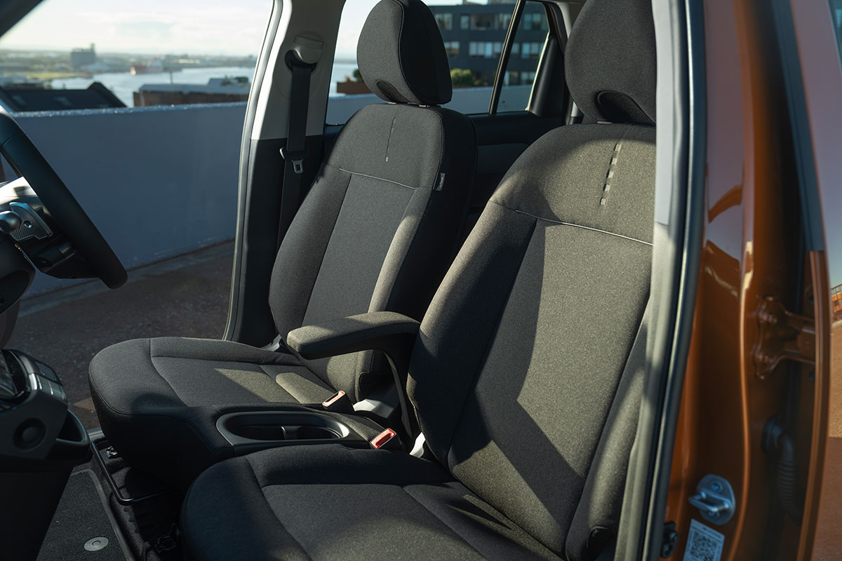 There’s a durable premise to the car, its contact points adorned in harder plastics that perhaps aren’t as comfortable on longer journeys. There are no such complaints around the base cloth seats, which are adequately padded and offer decent support.
