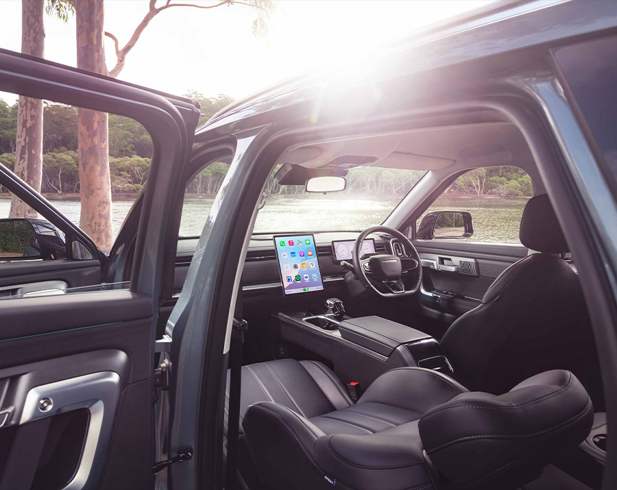 Opting for the Ridge will bring 19-inch alloy wheels, AWD with torque vectoring, a full-size spare wheel, 14.8-inch infotainment screen, panoramic sunroof, driver’s seat with memory function, heated steering wheel, ventilated front seats, an in-built dashcam, and puddle lights.