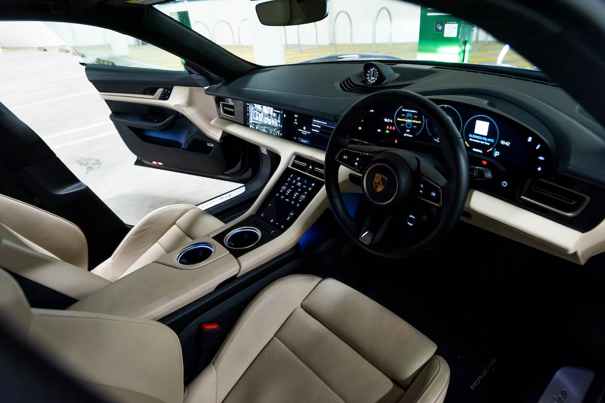 Unlike many cheaper EVs, the Taycan has dual charging ports, one on each side. Both can accept alternating current and the driver’s side can also be charged using direct current.