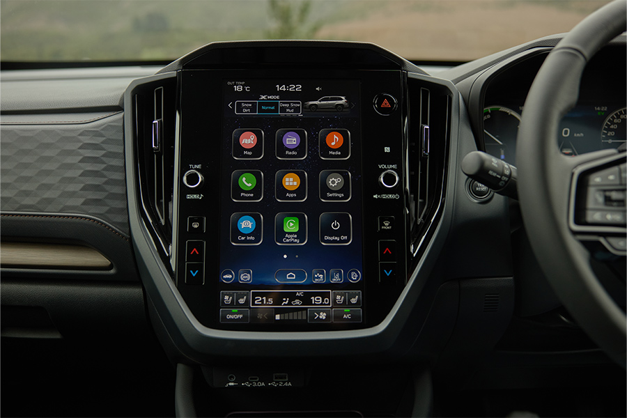 Front seat heating comes standard on all grades, with eight-way electric adjustability added on Premium and up in petrol, and Sport and up in hybrid. Ventilation is added to Touring trim. Notably, no grade scores steering wheel or rear seat heating – something uncomfortably emphasised during our testing as the temperature nudged 0ºC – and feels at odds with the Forester’s adventure-ready reputation.