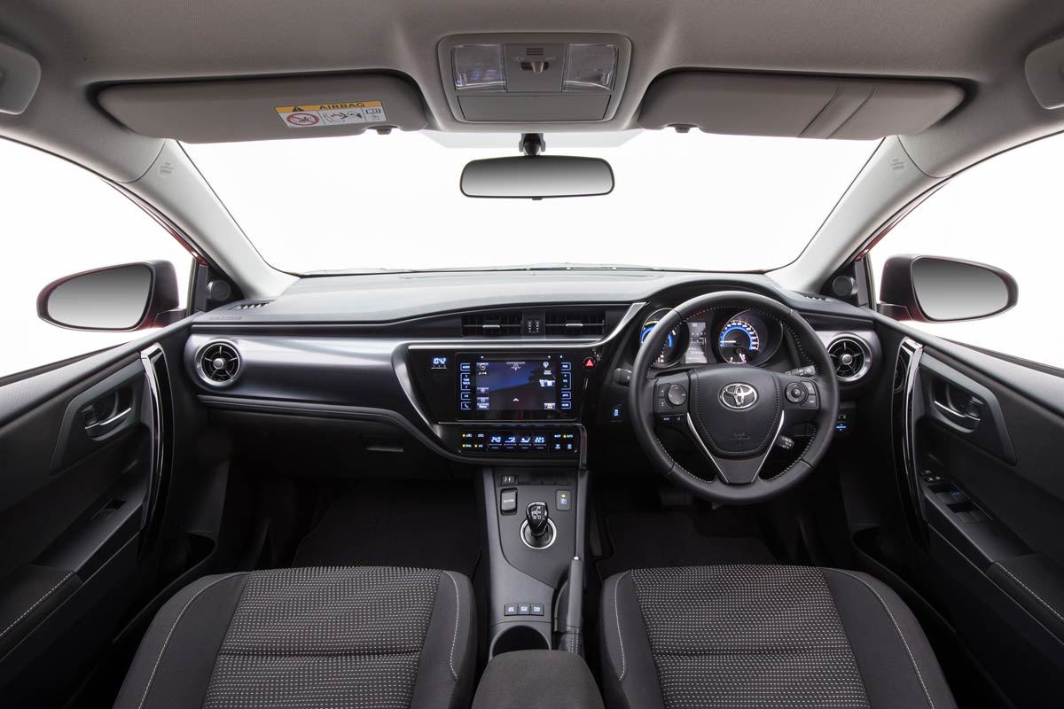 The cabin, which has good occupant space for its class and will easily seat four adults, mirrors the latest Corollas with smart presentation and familiar controls. The square dash design ensures good positioning of functions such as air-vents, while information and energy read-outs from the hybrid drive are neatly incorporated. The Corolla's front-seat comfort is better than average and drivers get a more tactile and fully adjustable steering wheel. Cabin presentation is enhanced with soft touch pads or trim inserts, particularly in the door panels.