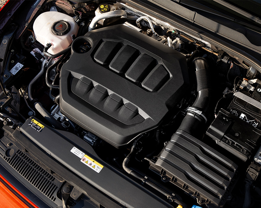 Sportiness is added in R-Line grade, with 18-inch alloys, selectable driving profiles, progressive steering, a heating steering wheel and exterior trimmings.