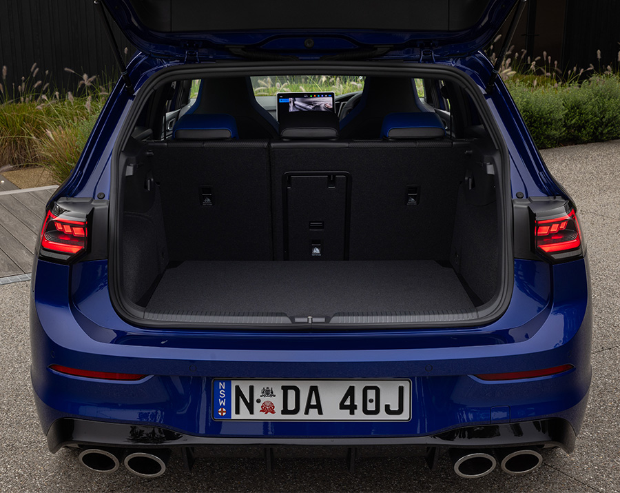 Seat comfort is excellent in both rows, with front passengers ensconced in heavily bolstered ‘R branded’ buckets trimmed in soft Nappa leather. No real complaints about storage or passenger space either. While there’s no escaping the Golf’s small-car dimensions, there’s still enough room to sit four adults in relative comfort. The back seat is also nicely bolstered to ensure outboard passengers aren’t thrown about during hard cornering, while dedicated air vents and tri-zone climate control further underscore the R’s daily driver credentials, especially for owners with small kids.