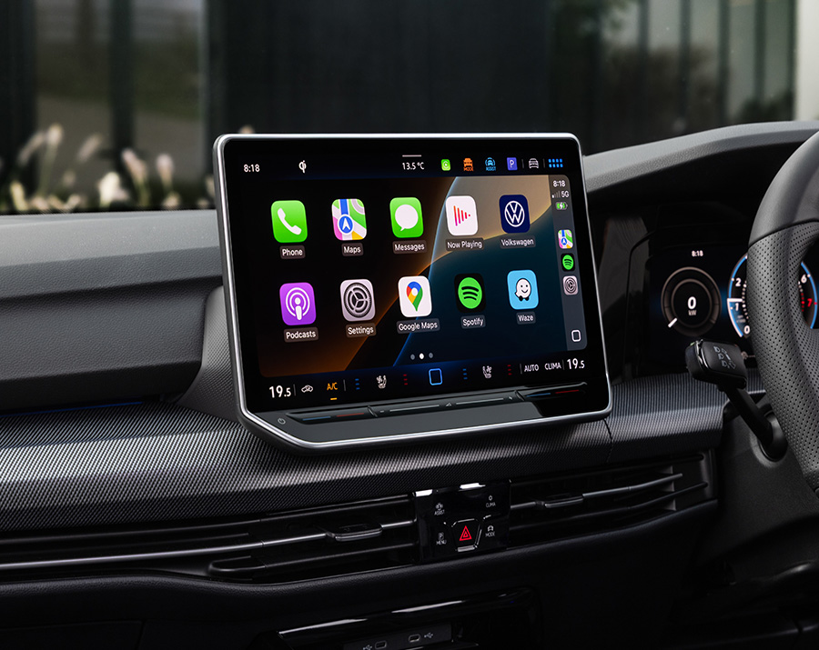Broadly, though, the R’s cabin is well packaged and feels suitably elevated over a regular Golf thanks to its garnishes of carbon trim, blue highlights and smattering of R badges.