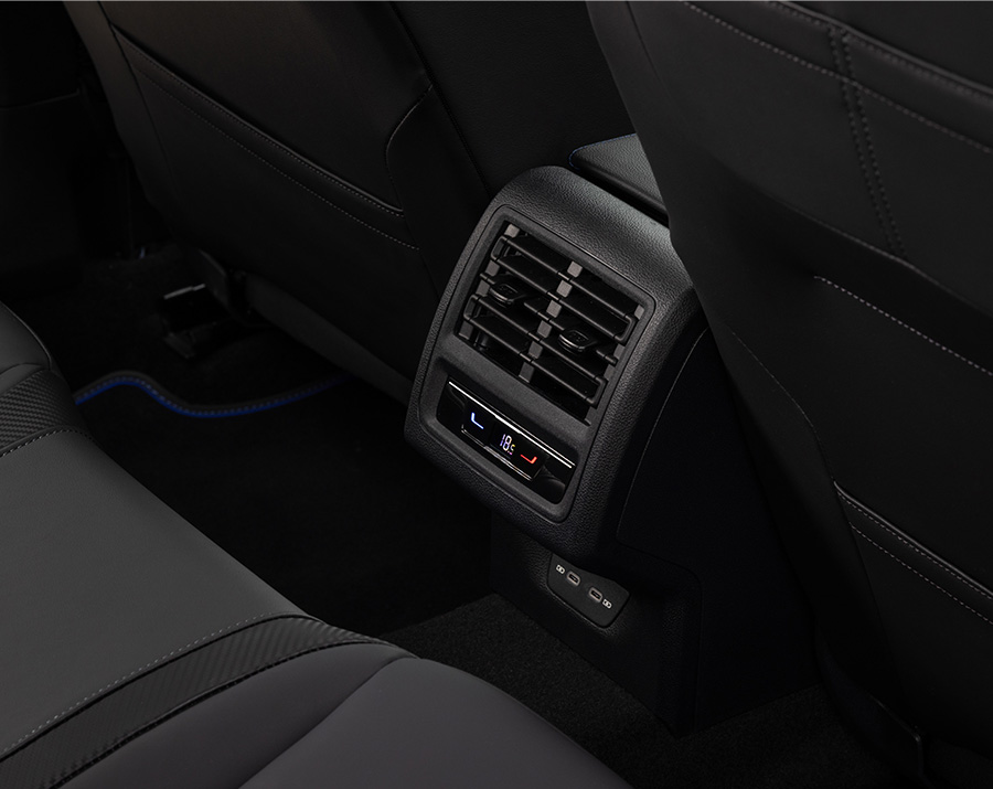 Inside both front seats are heated and ventilated (although only the driver’s is electrically adjustable), while a head-up display, large 12.9-inch central touchscreen and configurable digital instrument cluster ensure the driver is never short of key information. Wireless Apple CarPlay and Android Auto are both standard, as are four 45W USB-C charging ports.