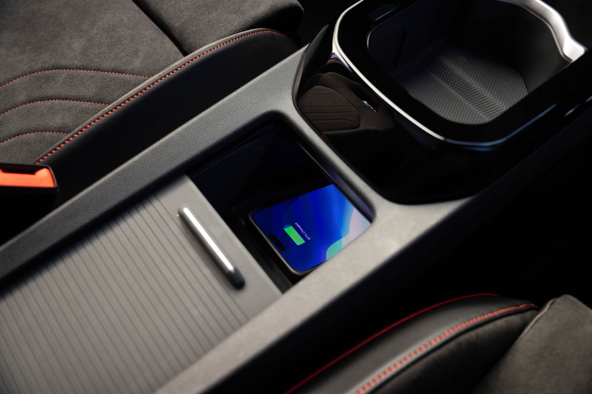 Unfortunately there’s just one spot to wirelessly charge the phone, and its position inside the low centre console may be aimed at driver safety but is a little inconvenient.