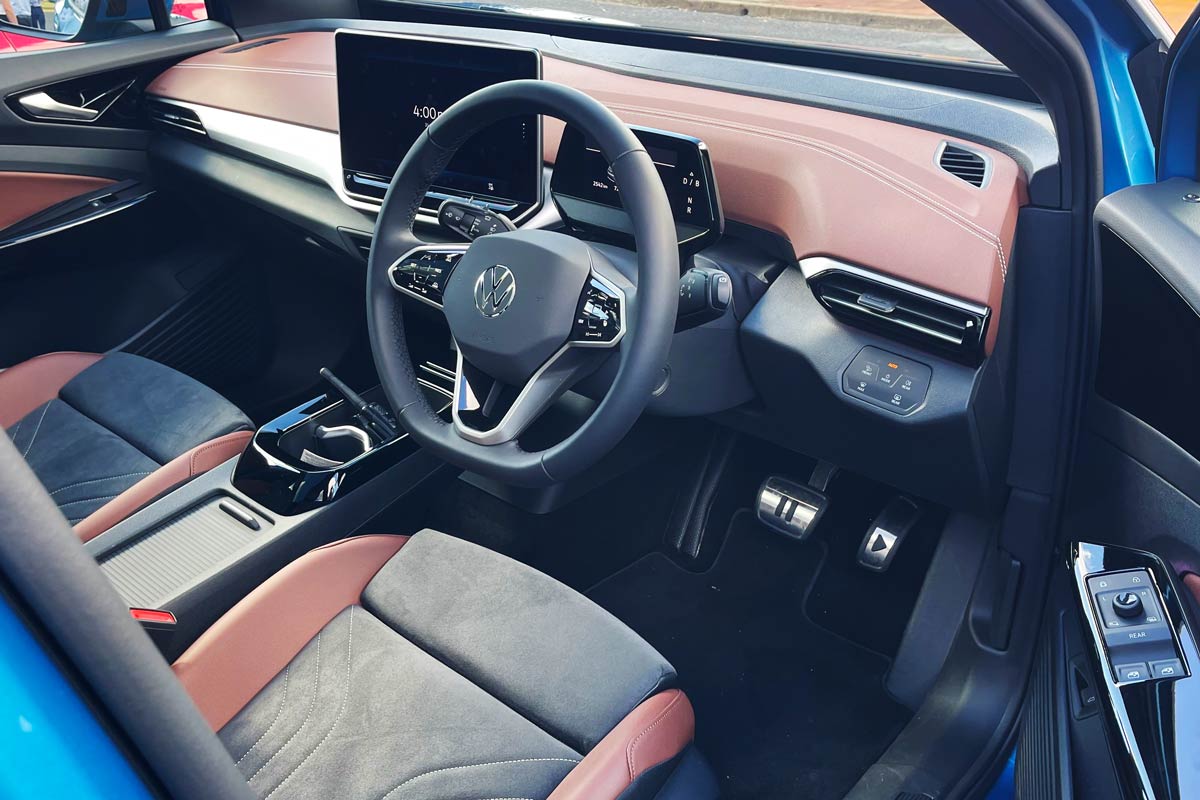 You could be forgiven for thinking the brown and grey two-tone styling of the ID.4 Pro I drove might have the potential to date, but with fit and finish quality up to a high standard, the impression is more premium than drab. Gloss touch points, as always, would be the one misgiving—they might feel nice to touch but pity the person left to keep the car clean.