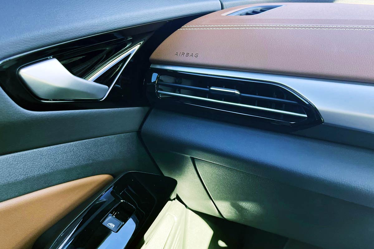 Tri-zone climate control and 30-colour ambient lighting further add to the interior ambiance. The infotainment system includes a 12.9-inch touchscreen with voice control, and FM/DAB+ digital radio, complemented by a seven-speaker sound system and a wireless smartphone charger.