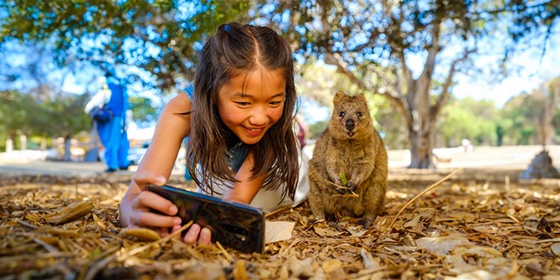 Selfies with a wild quokka. Credit: Tourism Western Australia