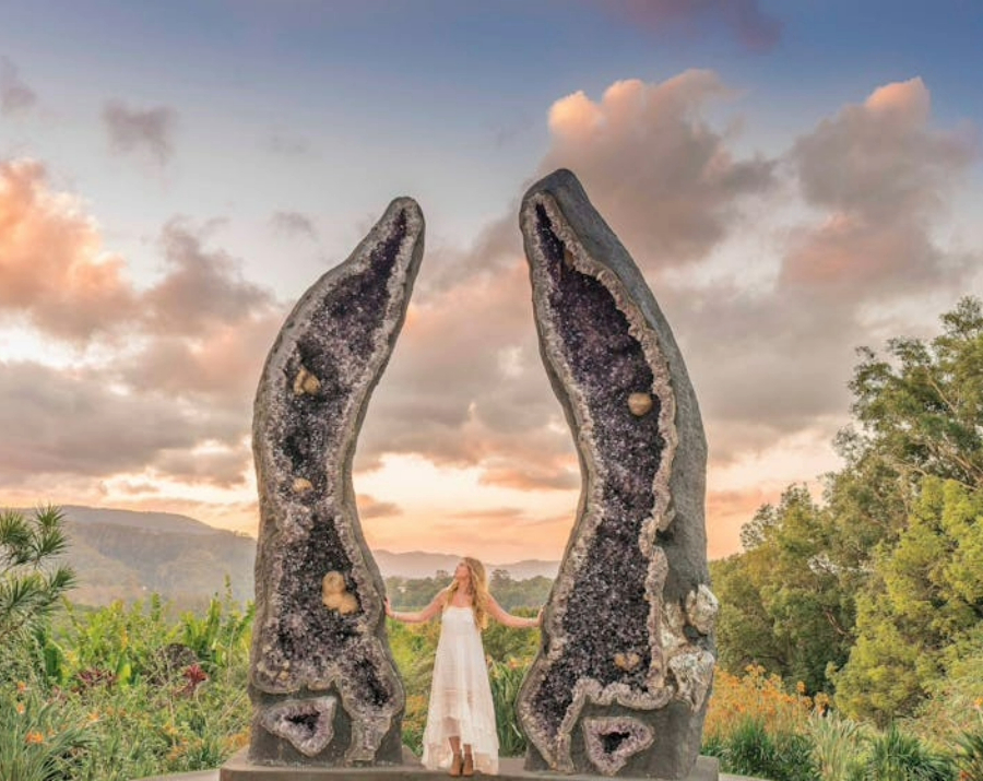 A short scenic journey into the Byron Bay hinterland lies a tranquil and magical sanctuary - Crystal Castle. With its peaceful ambience and exquisite natural splendour, you can stand between two of the tallest crystals on earth - the Crystal Guardians or be immersed in the magic of the Enchanted Cave, the largest amethyst cave in the world.