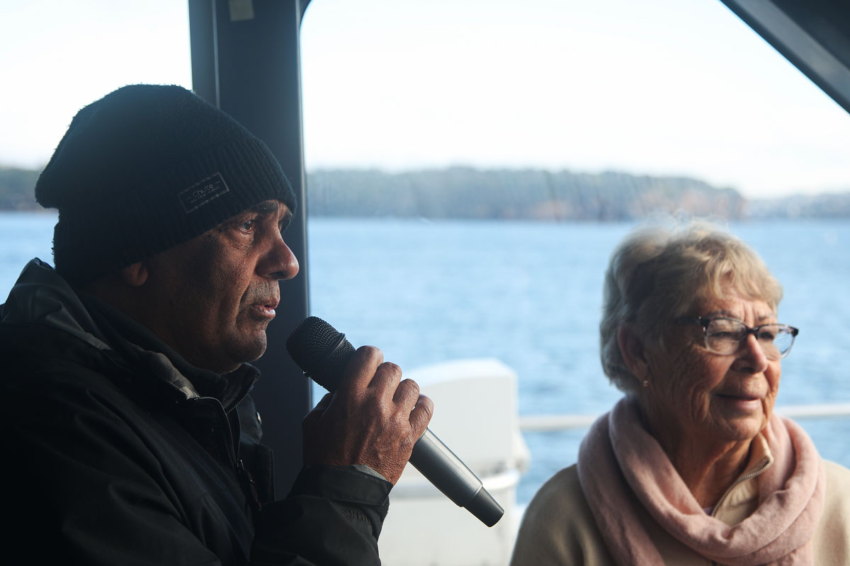 The vessel received a new livery for the NRMA’s centenary in 2020. The striking wave-like design is by award-winning Gomeroi artist Warwick Keen and includes the names of Indigenous clans from around Sydney Harbour. Whales hold significance in Aboriginal culture, as indicated by the many whale rock engravings along Australia’s east coast, so I’m delighted this cruise has a NAIDOC week component.