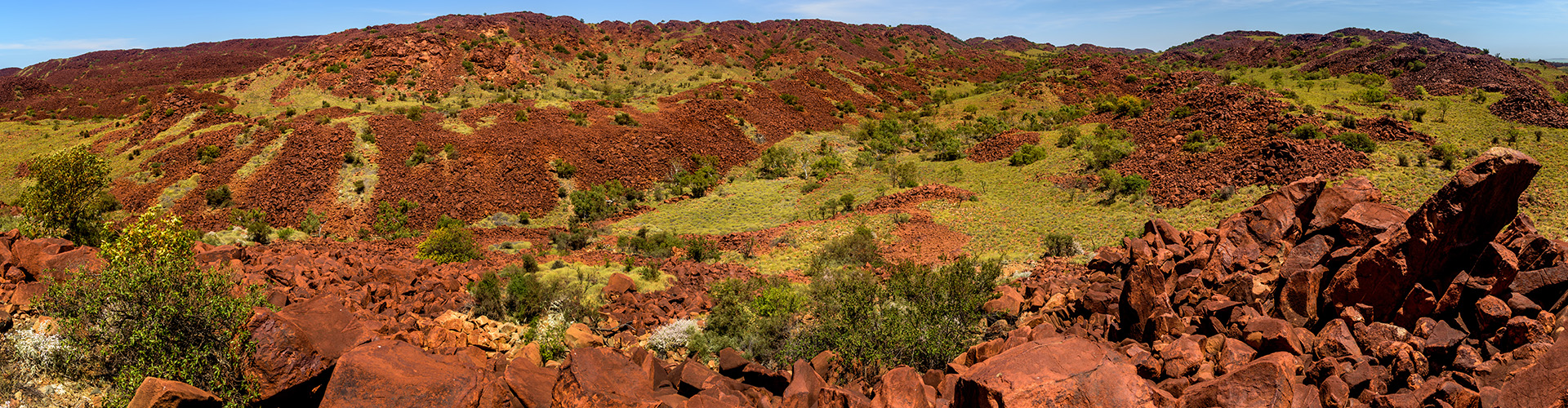 Translating to ‘hip bone sticking out’, Murujuga consists of jagged red rock formations set against the Indian Ocean on Western Australia’s coastline.