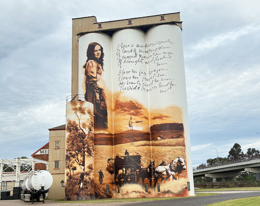 Fuelled by coffee and curiosity, we made a quick detour to Gunnedah. The striking silo mural featuring poet Dorothea Mackellar is a fitting tribute to the author of ‘My Country’, whose local ties inspired her words.