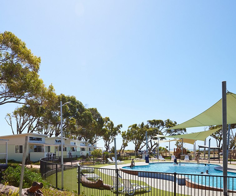 Cervantes, a charming fishing village on the Coral Coast, is just over two hours’ drive north of Perth or about 2.5 hours’ drive south of Geraldton. The park is conveniently located in the centre of town and is fronted by a calm white sand beach. Facilities on site include a sparkling swimming pool with shade, modern kitchen and barbecue facilities, a well stocked shop and the popular Seashells Cafe which overlooks the beach. The kids’ activity centre features a pool table, ping pong table and lounge area, and there’s a nature playground to be explored.